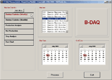 B-DAQ (bee' dak) has been developed with the same structure, database and reports as it's big brother P-DAQ. Having the same back-end ensures that all of your systems can be managed cohesively. B-DAQ was developed to interface to perfect binding equipment and bindery stitchers. B-DAQ collects information with as little user input as possible, which frees the operator up to concentrate on their primary job, producing quality work for your business. B-DAQ consists of four primary modules, (click the links to the left for more information about each module) all operating together to provide the highest level of real-time data possible without compromising the fail-safe requirements of the system. Using our unique Bi-directional Data Synchronization Technology (BDST), the local and remote databases are continuously synchronized. B-DAQ monitors gross and net books, estimated time remaining, machine performance, pallet production data and much more all at the touch of a screen. B-DAQ can communicate with your current systems to facilitate the exchange of vital information throughout your business. B-DAQ can reduce the time spent in reporting labor and pallet information to other systems. A complete set of reports give users the information they need for trouble-shooting problems and analyzing productivity and performance. B-DAQ allows plant managers, scheduling personnel, and customer service representatives to monitor the current status of jobs from anywhere on the network with up to the minute data fed directly from the bindery. B-DAQ collects and reports on data that print management has been asking for, but was previously too costly and time-consuming to acquire. KEY BENEFITS: